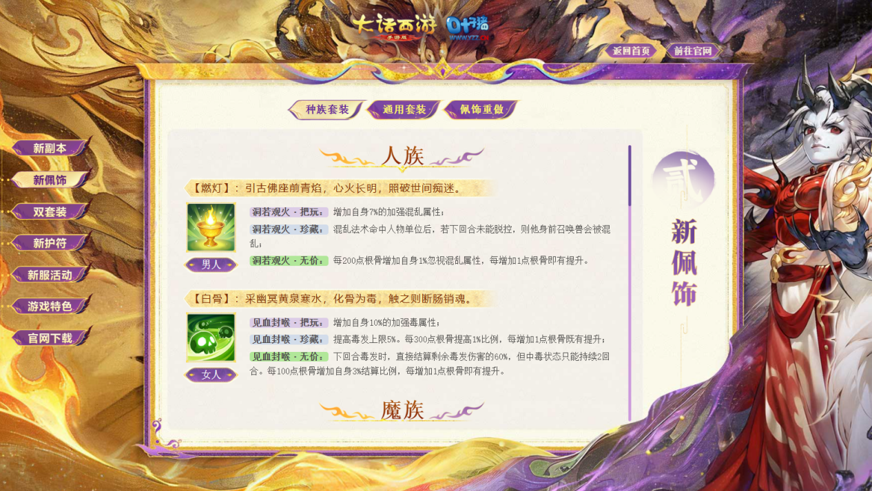 大话手游大型资料片上线!大话西游手游2026一念圣魔资料片开启,新魔王窟副本驱神大殿,新佩饰&双套装焕新战斗,三大新服体验必得现金红包,冲击送300仙玉。 还不知道怎么玩转新服的朋友,赶紧来看看叶子猪这一篇详细的新服攻略,手把手教你怎么轻松拿到奖励! http://xy2.yzz.cn/sy/special/202604xzlp/ 首先,大话手游本次新资料片专题,玩家最关心的必然是双套装、新佩饰、护身符,这三大系统的更新内容。其实从整体上来看,每个种族都得到了加强,甚至于比之前更加平衡了。 燃灯男人、白骨女人、金鳞龙族、太皓敏仙、魅惑女鬼、地藏男鬼等,PVP/PVE场景都有了不同程度的加强,策划推出双套装&新配饰,本意上就是为了让玩家都带上进攻+防守两套佩饰。 我们这里也详细列出了种族套装、通用套装、佩饰重做的各种效果,包括双套装怎么解锁,新护符打造洗尘等,帮助大家全面了解新资料片。 护身符共有打造、升级、强化、洗尘和重铸等共五项养成操作,投放的新养成材料有无相尘和一念之息,想要冲击八级7星连珠的朋友,可以看看叶子猪新资料专题。 最后是新服活动,叶子猪本次福利活动,针对大话手游三大新服开展: 免费畅玩服:一念圣魔(4月14日开服) 时间点卡服:一念如故(4月17日开服) 免费畅玩服:一念初心(4月21日开服) 也就是说,只要你玩这三个新服【一念圣魔】或【一念如故】或【一念初心】,新人下载+礼包激活,即可得6元现金红包;等级≥90级,签到5天,就能免费领取300仙玉,价值30元,新区冲级有这个福利可真不错,升级都比别人快一步! 叶子猪大话西游手游【一念圣魔】福利礼包,今天已经全面上新了,礼包使用方法:主页面点击【福利】→礼包码兑换→礼包码→输入礼包码。注意不是新服专属礼包这里输入哦~ 了解大话手游全新资料片,参与新服活动:http://xy2.yzz.cn/sy/special/202604xzlp/,必得现金红包+300仙玉,千万不要错过了。 [编辑:ssc]