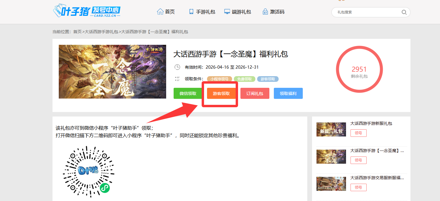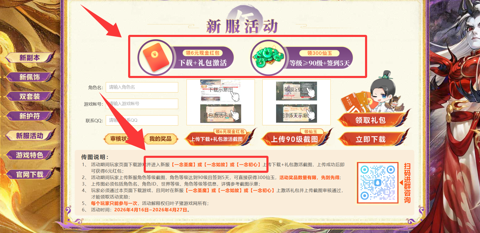 作为一个大话老玩家,相信鎏金宝鉴十周年画册,一定在你的收藏列表里面!过往十年大话,那些令人难忘的角色、召唤兽与经典场景,都藏在画册的每一页。 之前没拿到十周年纪念画册的大话兄弟,现在参加叶子猪一念圣魔新资料片活动,就能把精美周边带回家了! 大话最新上线的一念圣魔活动,人手一个30元免费仙玉,以及6元现金红包,群内还有周边、红包、仙玉等奖励,活动中奖率巨高。 真不开玩笑的,叶子猪亲测活动有效,在官方一念圣魔资料片活动中,拿到了十周年纪念画册,进群的朋友只要表现活跃,叶子猪就免费赠送一本鎏金宝鉴十周年画册。 先到先得,欢迎大家进群了解!除此之外,大话西游手游【一念初心】畅玩新服,4月21日12:00开启,提前预约还能挑战鸡驴抽奖。 可以看到奖池有藏宝图基金、见闻录基金、648红包、6元红包、5元红包等等,想知道怎么拿到大话奖励的朋友,也加入上方交流群即可。 如果你运气真那么差,抽啥都不中,那就来参加叶子猪新资料片活动:http://xy2.yzz.cn/sy/special/202604xzlp/ 这是一个必中奖必得红包的专题活动,吃保底都能拿到6元红包+300仙玉,一个号免费拿下36元。对于新区起号的朋友来说,简直是一大福音! 只要你在大话手游新服,一念圣魔、【一念如故】或【一念初心】,达到相对应的游戏等级,签到时间累计5天,就能保底拿到奖励了,完全不用赌几率。 最后,闯荡新区怎么可以少得了礼包?大话西游手游【一念圣魔】福利礼包:http://card.yzz.cn/ka-7684.html 礼包发号页面点击【游客领取】,或识别小程序,进入叶子猪助手,每个人都能免费领取20个大话手游礼包,攒一手资源轻松冲级,打造几组五开号都不是问题! 以上就是今天的所有内容,想要大话鎏金宝鉴十周年画册,以及现金红包、免费仙玉、福利礼包的朋友,欢迎进群了解。 [编辑:ssc]