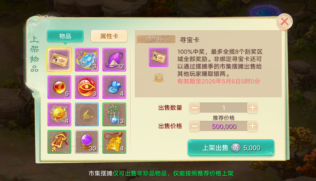 大话西游手游市集摆摊赚银两!寻宝闪卡还能刮出五常神兽?