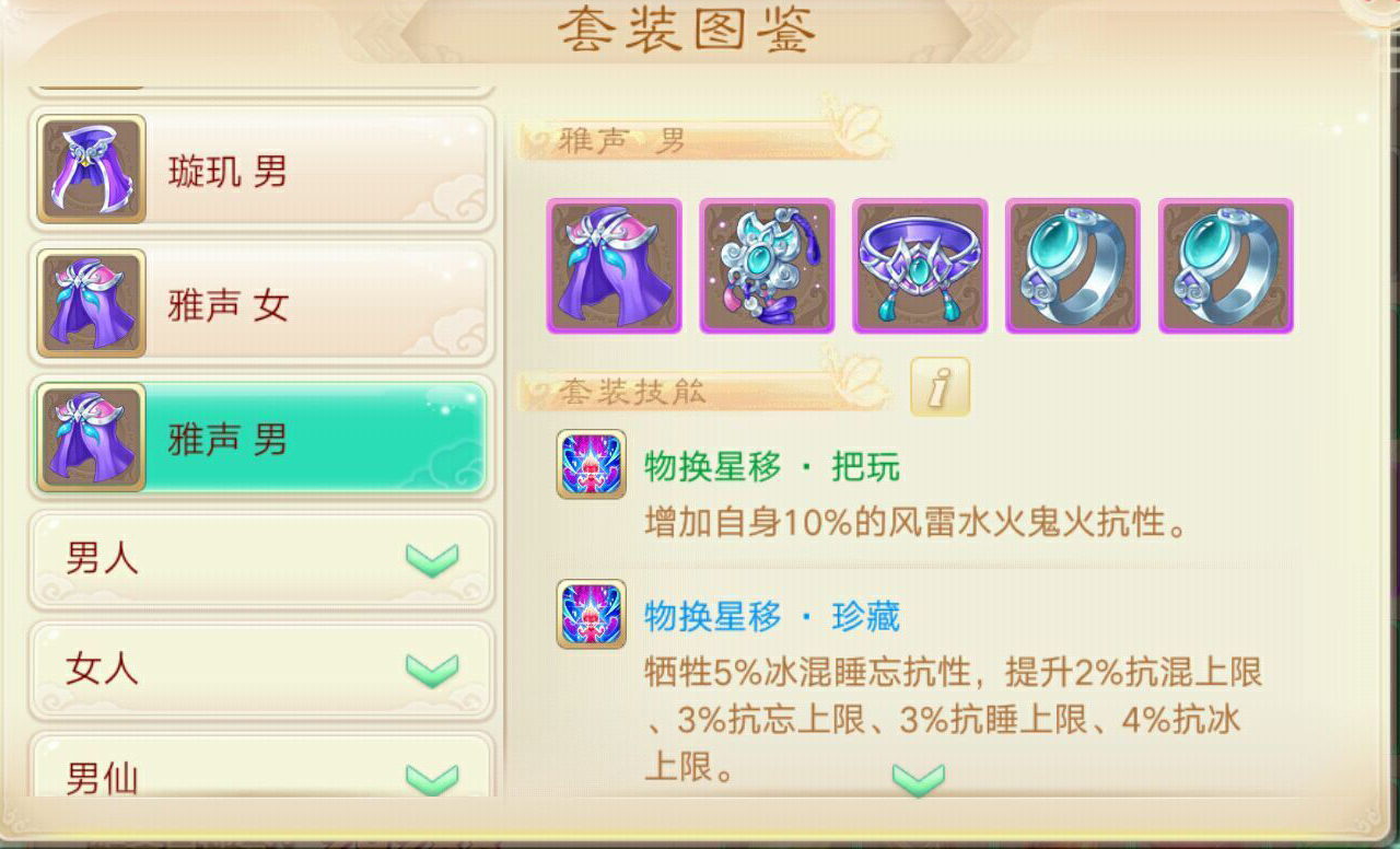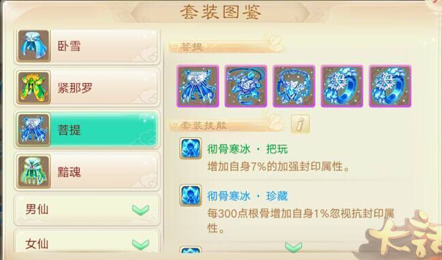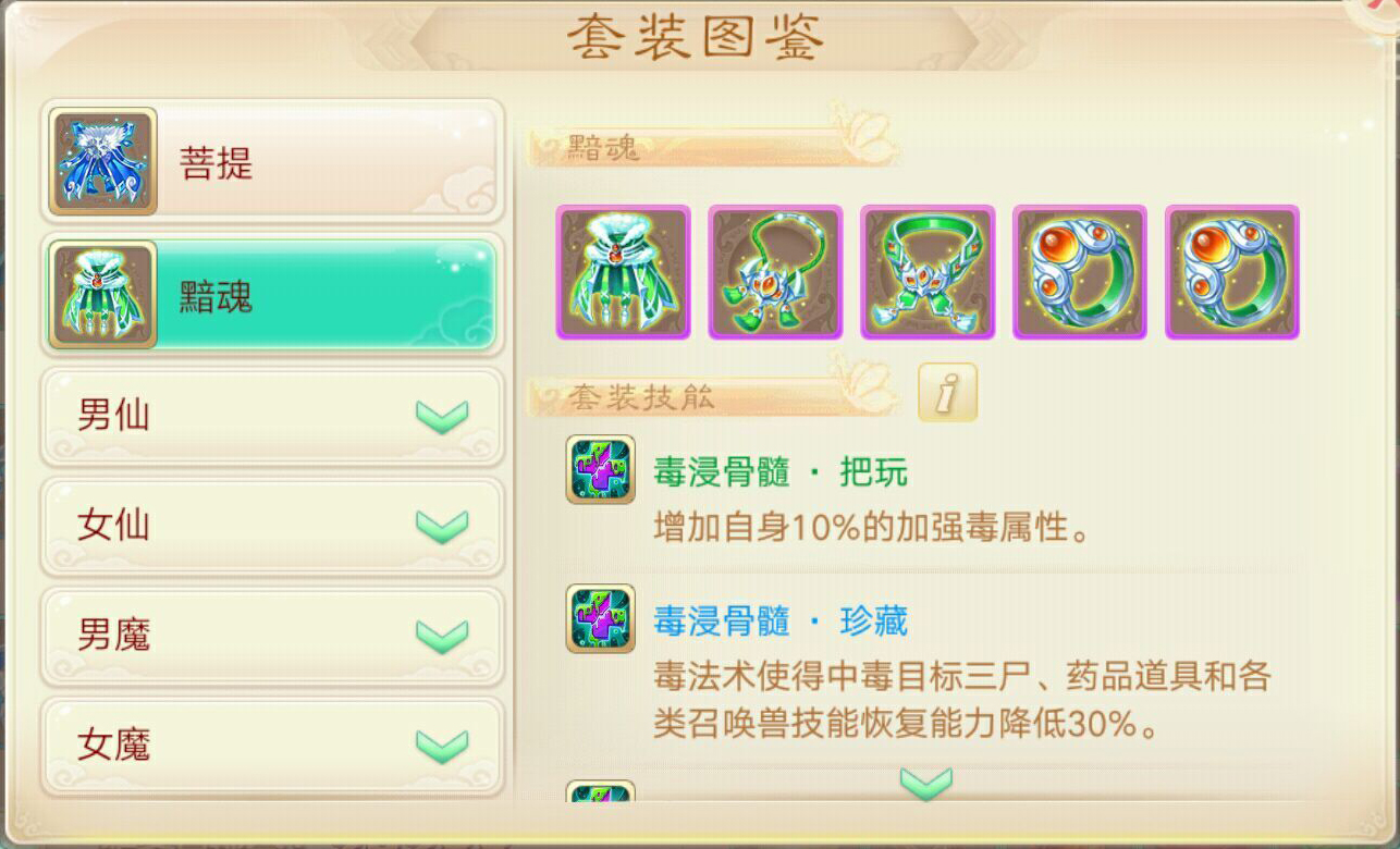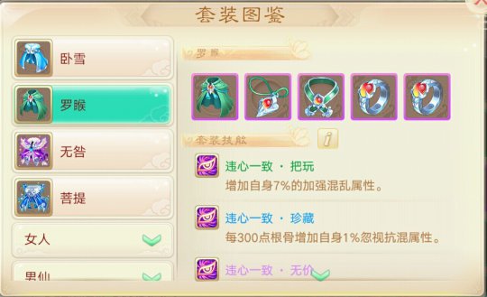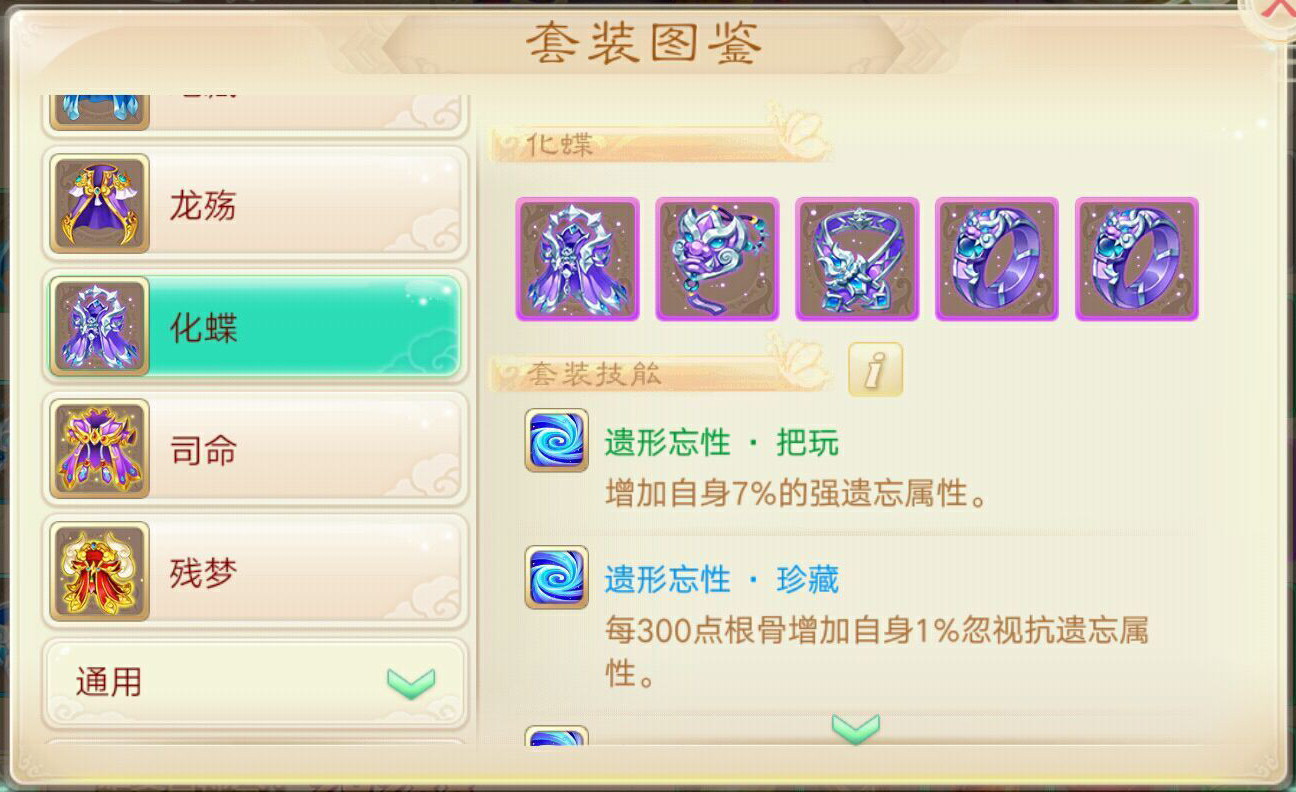 大家好,我是紫陌红尘的一醉梦逍遥,最近还是看到很多小伙伴想了解一下套装的选择问题,尤其是我们的大众玩家在用不起无价套的情况下,我们应该选择哪些套装那,那么逍遥今天就根据自己的一些游戏心得帮大家盘点一下吧。 其实套装不仅仅是只有无价才会发挥出特别大的威力,我们普通玩家其实只要能耐的下性子找准方向,慢慢的累积一定会获得我们自己中意的套装的,这里所指的中意的套装是指珍藏套装,以下所有的分析盘点也都是围绕珍藏套装来的,至于无价的话,对于我们大众玩家来说,基本可以秒掉换钱更加划算一点,好了闲话不多,那么下面逍遥就按照比较实用的一些套装来分析一下,然后会把每一个套装适合的职业备注上去,这样可能更加清晰一点。 残梦珍藏套: 为什么要把仙族的套装放在第一位讲,在逍遥看来如果其他职业的套装只是锦上添花的话,那么仙族的套装带来的效果就是逆天改命了,不管是套装自带的套装技能,还是配饰附加的属性,对仙族的帮助都是最大的,所以这里先来讲一下仙族,说到仙族的套装,那么自然就会说到传说中的套装残梦了。其实残梦套珍藏套对于我们平民来说也是很不错的,因为本身就是自带强10的,对于纯敏仙来说也是很不错的,但是最主要的是珍藏套带来的技能效果,每一点灵性增加20点的伤害,而且这个伤害还是无视抗性的,根据逍遥的测试显示,残梦部分的伤害还是可以被强力克加成的。根据目前的玩家等级,基本1000灵性加点是不成问题的,也就是说如果你克100,那么你实际带来的伤害其实差不多就是3W,要知道这伤害都是无视抗性的,再加上你原先的伤害觉得也是很不错的。这里但是残梦是移山套,如今的普通移山其实也不是特别难杀了,所以持之以恒就是希望。 推荐职业:仙族,鬼族 龙殇珍藏套: 龙殇套的珍藏效果还是不错的,对昏睡或者遗忘的单位伤害增加80%,但是却需要其他的队友的配合,如果队伍里面没有睡人或者遗忘鬼那么这个套装除了把玩套的原始8%的强法之外基本没有太大的用处,但是龙殇套胜在是中殿套,获得的难度比较容易。其次如果在PK中其实还是非常有用处的,比如中敏队当中,如果给龙殇套的火力仙配备一个遗忘鬼的话效果还是杠杠的,如果这个鬼用的也是龙殇套的话,那就更6666了。 推荐职业:仙族,女鬼。 兰心珍藏套: 其实对于平民魔族来说,我觉得兰心套的反而是不错的首选套装,虽然它的把玩套的强盘效果比起另外一个套装玄通要低了5点,但是加防状态下回合开始前的10%的回血效果还是很不错的,尤其是对于平民对于来说,如果你们的回血鬼回血量不是特别给力的情况下,这个其实也是一个不错的补给。中殿套获得难度也是相对来说比较容易的。 推荐职业:女魔 乾坤珍藏套: 对于男魔来说我还是比较推荐乾坤套的,被速上的单位带有10%的概率从混乱或者昏睡状态中脱离出来,意思就是说如果你不幸中招还是有可能从混乱中脱离出来的,任务中怪物出混的概率还是很高的,所以套装效果还是蛮实用的,另外把玩套的强速达到了一个非常不错的效果15%,几乎相当于一个武器的强速效果了,点赞,敏队和血队不一样,每一点速度都弥足珍贵,所以男魔的强速多少也非常重要。但是乾坤是移山套,所以在获得难度上就比较难了,需要比价长的时间才能刷齐一套珍藏。这个就需要慢慢积累了。 推荐职业:男魔 断鬼珍藏套: 大众男鬼最好的套装没有之一,珍藏套就可以达到惊人的回血量翻倍的效果,绝对是任务PK不可多得的神技。一般来说大众男鬼的忽视都不会高,那么在一些相对高端的副本或者PK中往往回血量是不够的,那么这个回血量翻倍的效果就体现出来了,举个简答的例子你本来回血量为5W,而你队友的血槽是10W,那么你的回血量是跟不上的,因为中高端副本的伤害往往都会很高,所以这个时候你要做的是,尽量把队友的血槽回满。而且断鬼套是前殿套获得的难度应该是相对来说比较容易的,逍遥的男鬼离珍藏套也就只差一个披风了而已。 推荐职业:男鬼 罗睺珍藏套: 罗睺珍藏套其实更加适合血男人一点,因为只有血男人才可以把罗睺的效果发挥到最佳,每300点根骨增加一点忽视混,按照目前的全血加点或者接近全血加点的男人来看,这个套装能达到的忽视效果差不多是三点,这里稍微和大家提一下,如果你的根骨没有达到300点会怎么样,根据我的小伙伴实测,貌似不到300点根骨要求也是有加成的,只是同比例的缩小,比如30点根骨就是0.1的忽视效果,那么其实对于敏男人来说也北非一无是处了,除了把玩套的原始强法7点混乱之外,大概还能带来0.8左右的忽视效果,如果你用的是300根骨的武器,那么这个效果可以达到1点。罗睺套是中殿套,这个效果还是很不错的,虽然不能完全逆天改命,但是至少是对男人最主要法术的一种最彻底的加强。 推荐职业:血男人,敏男人 菩提珍藏套: 菩提套其实可以看成是冰版的罗睺套,但是又有所区别,可是对于我们大众玩家来说又是一样的,因为它和罗睺的区别主要是在无价部分,前面基本和罗睺套是一样的,只是一个是强冰,忽视冰,一个是强混,忽视混罢了,血冰人的效果会比敏冰人的效果好一些,但是菩提套有一个地方比罗睺套优势明显一点,因为大部分的大众男人都是敏的,而大部分的普通女人都是血的,其次谁说男人必须是主混的,一样可以选择主冰啊,所以菩提套的适应面反而