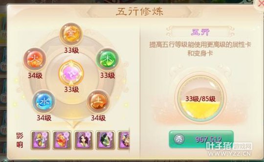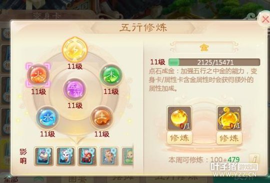 五行修炼提升的主要方式为使用五灵珠。低级与高级五灵珠分别提升单项修炼经验1000点与3000点,每周可使用100次。 五行等级直接影响可使用的变身卡类型。 因此,首先要把五行等级吃到能变常用的卡,然后针对性的吃五行,提升加成幅度。 三、不同等级需要多少五灵珠?