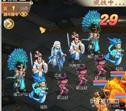 弇兹(主BOSS):单数回合高级青面獠牙,单位3个。双数回合高级小楼夜哭,单位3个, 西海帝君(主BOSS左右护法):群水与群雷法,伤害在10W左右。 左右嵫山护法(孔雀明王):震慑与大力攻击 陵鱼:控制技能:失心狂乱,忽视较高。主动技能:高级青面獠牙,单位1个。当旁边精灵小妖死亡后会将其拉起,被拉起血量193W左右。 精灵妖(前排三个小妖造型):超负敏,在最后会施放主动技能:霹雳机关,每回合触发。每一个精灵妖每回合会叫一次:看我的霹雳机关 ,每一个喊叫,代表一次随机范围爆炸,触发后会有震屏提示。例如一个精灵妖叫喊成功,次回合,在所有命令施放后,结尾时触发时会有一次震屏提示。代表一次爆炸。触发爆炸会在精灵妖喊叫成功后,次回合所有命令结束时触发爆炸。机关爆炸触发会直接被秒杀。 PS:由于精灵妖每回合触发机关,在场的精灵妖每叫一次,会在下一回合时爆炸,例如在第一回合三个精灵妖一起叫喊,表示会有三次震屏不规律的范围爆炸。请留意以下图片震屏效果次数