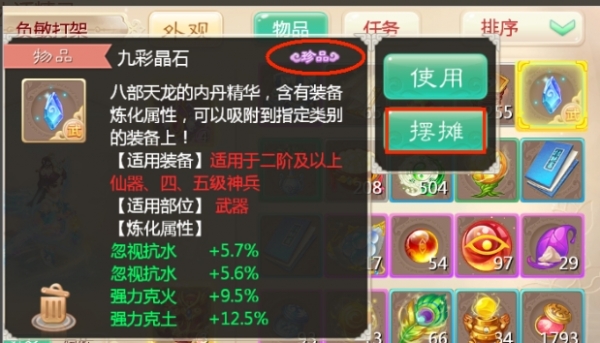 大话西游手游全新道具九彩晶石及炼化吸附功能的测试