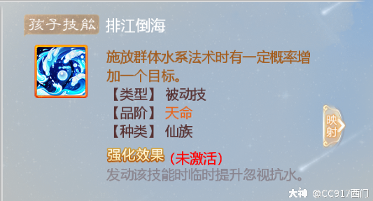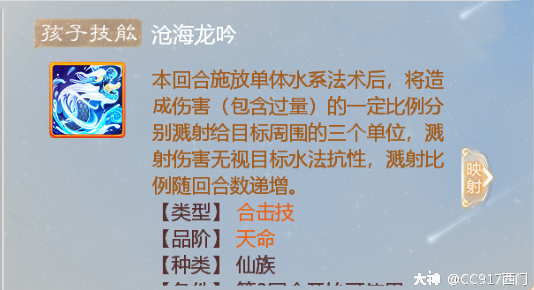 还有一种套路就是双火力套路,这个套路打的就是火力压制,所以万能的鬼族又成了火力输出,2个强力输出打的就是血队叫出来的支援宝宝,所以对于这俩强力输出的孩子技能必须要有例如仙族水法的技能叫沧海龙吟和排江倒海,最重要的就是沧海龙吟的技能了:释放单体水系法术将造成伤害的一定比例分别溅射给目标周围的三个单位而且溅射伤害无视水法抗性,比例随回合数递增。这个技能就是3回合以后秒杀重要单位了,而且这个技能是合击技,2个输出单位共享冷却所以另外一个就可以选择释放法术目标+1的技能也是不错的,双火力的强力压制,慢慢蚕食血队的物资。