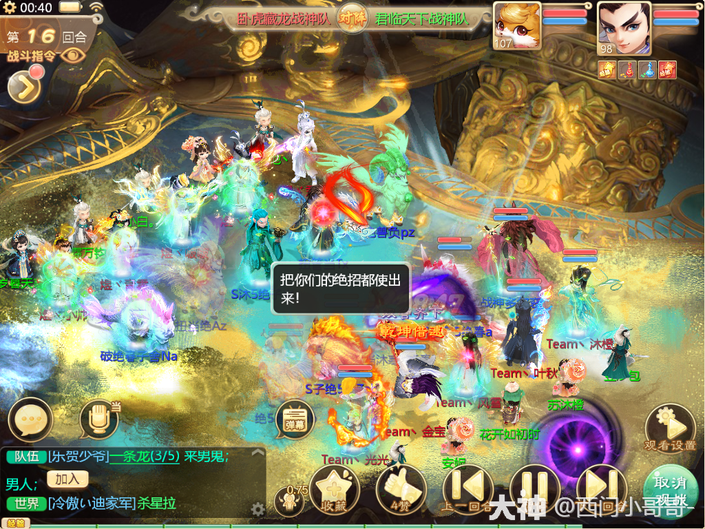 大家好,我依旧是你们的西门,第十七届群雄逐鹿已经落下帷幕了,今天有小伙伴问我,在半决赛卧虎藏龙战神队对阵君临天下战神队的第二场比赛中,战斗内会乱敏呢?遂开此帖跟大家解析一下其中的小细节,同时希望大家在日常PK中也能注意到这些细节。在看比赛之前,我给大家先看一个天策符:叫闲庭信步! 可以看到的是己方在场站立单位数9个时(需要注意的是不包括7个或者9个单位数!),释放增益法术时增强效果15%(增益法术包括:加攻、加防、加速、魅惑、治愈)敏队打敏队这个小细节是非常重要的,好了,接下来录像编号在下图大家可以一起来讨论讨论。 刚进入比赛可以看到双方都是敏队,带着乾坤的男魔,阵法用的逆运五行,那就看谁先速了,敏队打敏队哪队先速出来,哪队就有敏序上的优势。 可以看到第一回合的时候卧虎藏龙战神队抢到一速成功起速,此时卧虎藏龙战神队在场上站着10个单位所以满足天策符-闲庭信步的要求,成功触发闲庭信步获得强法加成,卧虎藏龙战神队带速的男人是比君临天下战神队不带速的男仙要快的!男仙成功的被男人控制! 好了,接下来来到第六回合,这回合卧虎藏龙战神队男魔补了速,但是这回合卧虎藏龙战神队在场单位是9个单位,没有满足天策符-闲庭信步的要求,所以不能获得额外的强法,就因为这一点点强法的原因,导致卧虎藏龙战神队男人上速后没有君临天下战神队男仙速度快了! 在第八回合的时候卧虎藏龙战神队男魔又补了速,就是因为第八回合的时候他们场上单位数是10个能获得天策符闲庭信步的强法加成,获得加成后己方男人是要比对战方男仙要快,其实比赛就在于这么一点点的小强法,小细节的。有了额外的强法就快,没有额外的强法就慢。 接下来到13回合,回合刚开始男魔就再次补速,这次只有8个单位在场没有获得闲庭信步的额外强法,而君临天下战神队男仙触发御风后是要比卧虎藏龙战神队带着男魔速的女仙是要快的,成功叫出宝宝卡到女仙的输出! 16回合,君临天下战神队成功补到速,且场上有10个单位触发闲庭信步的额外强法,反观对面卧虎藏龙战神队的男魔、男龙的速只是御风的速,在拿到男魔的速时,君临天下战神队男仙是要比卧虎藏龙战神队男龙的速度是要快的!所以君临天下战神队16回合拿到速度优势! 后面几个回合也有类似的情况,我也就不一一列举了,基本上也都是闲庭信步的问题,不是战斗内乱敏~ ,也不应该存在战斗内乱敏的情况,还有就是降敏需谨慎~尤其是敏队打敏队的情况,好好考虑考虑, 也希望各位小伙伴们擦亮眼睛不要被表象所迷惑,要透过现象看本质,看顶级战队PK的小细节才能学到更多的PK知识。 更多游戏攻略,请锁定叶子猪《大话西游手游》官方合作专区。 [编辑:叶子猪小秘书]