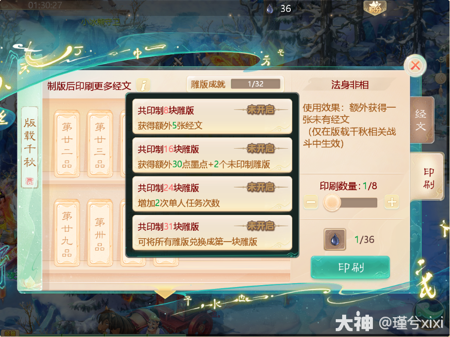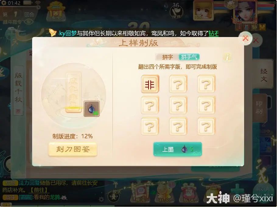 一年一度的版载千秋又来了,对于这个任务有人欢喜有人愁,看着别人得元气丹是不是很羡慕呢?一起来看看怎么做吧。 一、抄写经文(1)不想费事的直接挂机(2)追求极致想要物尽其用的可以守着打小怪,如果有两本重复的经文就可以使用经文,在下一场战斗中就会生效,可以获得好心值、召唤兽经验、伙伴经验、五行修炼等,如果只有一本不建议使用 二、迎接使者(1)不想费事的直接挂机,但是有可能无法完成三个隐藏任务(2)①首先去长安找到袁天罡,完成接受经文的任务,会得到一本法会因由,点击使用后进入战斗答题,根据给出的偏旁部首选出正确的汉字即可 ②答题后会得到一本法身非相,将它制版并印刷,然后去打BOSS,一般来说这样就可以得到六本新的经文,完成任务是没什么难度的(3)如果队友都在并且认真玩的话,可以适当使用威仪寂静来获取队友使用的经文,配合一下一次可以得到四本新的经文(如果不是差得很多的话我觉得没有必要这么费劲) 三、雕版传播(1)首先看下自己缺少的经文,如果少于等于八本,那么没什么问题,制版并印刷(缺少的经文数量的+1)的法身非相和4本妙行无往即可,先使用法身非相把经文凑齐再开始制版,制版过程中注意先制版需要墨点少的,一般是十几点的。(2)如果前两个任务都是挂机的,那么需要看运气,少的经文数量可能会大于八本。这种情况下,我们先制版印刷法身非相,进行几次战斗有墨点后完成八本经文的制版并印刷一张,然后去领取额外五张经文的奖励,能不能给没有的经文就全看运气了。重复以上操作再完成剩下雕版的制作并领取奖励,经文都凑齐后再使用妙行无往解锁隐藏样式。如果经文都凑齐了隐藏样式不够次数开的话,可以试试拼手气玩法。 (3)31本经文都齐了以后可以兑换成第一块法会因由,印刷后就可以挑战隐藏任务了 四、隐藏任务(1)第一重隐藏任务没有什么难度,带着伙伴的战斗 (2)第二重隐藏任务建议把伙伴下掉,然后带物理宝宝,按照98、87、76......的顺序依次普攻,如果分裂攻击打乱了顺序,只要普攻场上最大的数字以及最大数字+1即可 (3)第三个隐藏任务是拼三十个汉字,建议直接打开系统频道会简单很多,奖励一般是五个石头,运气好的会有元气丹,如果错了可以印刷法会因由重来 以上就是全部内容,希望对你有所帮助,更多游戏攻略,请锁定叶子猪《大话西游手游》官方合作专区。 [编辑:叶子猪小秘书]