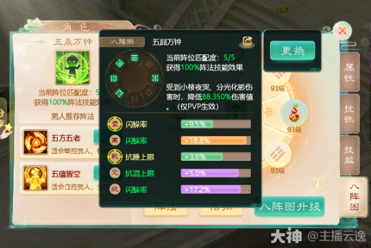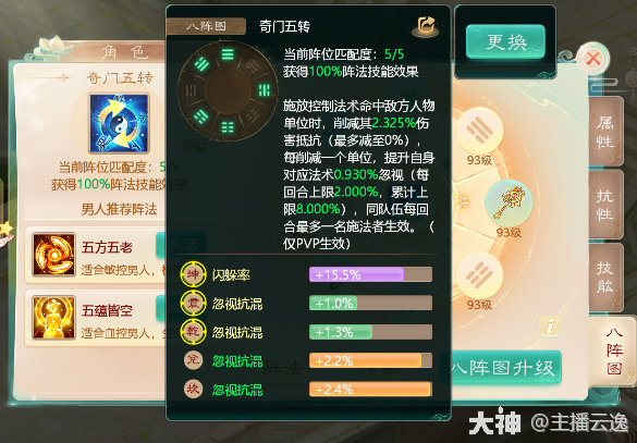 控制类:奇门五转 由乾,坤,震,兑,坎位组成。适用于人族的冰,混,睡。鬼族的遗忘。仅PVP战斗生效,施法命中敌方人物时,削减其伤害抵抗,最多减至0。每削减一个单位,增加自身对应法术忽视,最多为8点。一般会在特定战术由主控单位才会激活该阵法!
