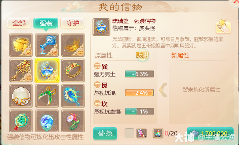 大家在洗炼信物的时候要注意是强袭还是守护信物,别弄错了。不然就会白白浪费你的五色石!