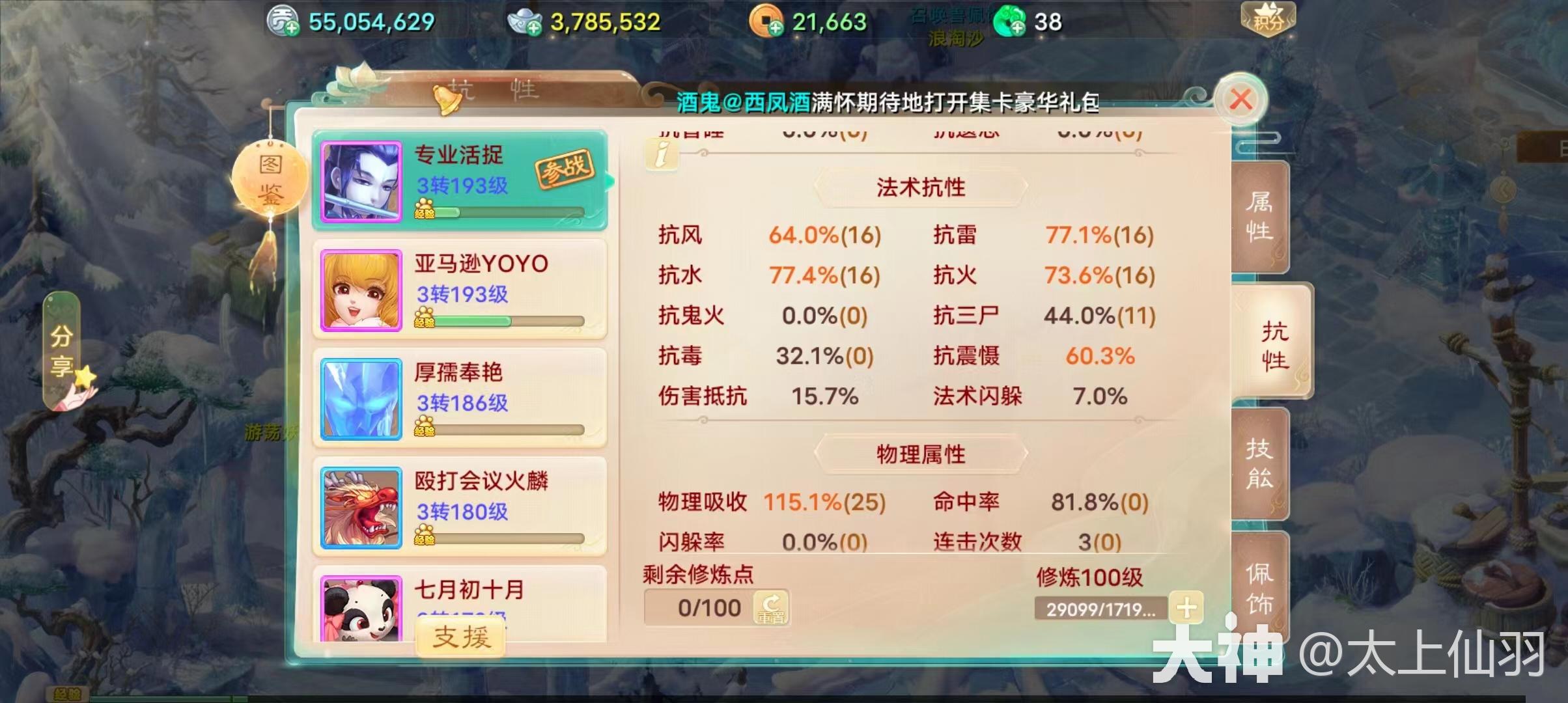 修炼点加点:伤害法术抗性、物理抗性、反震以及抗一些三尸虫伤害。