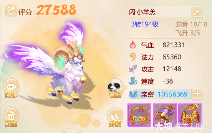 召唤兽面板属性来自:坐骑技能、召唤兽配饰、属性点加点、修炼点加点以及首发技能搭配,妖精老师的还差反震,所以下面给一个最佳的搭配方案: