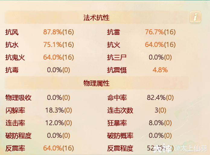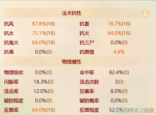参考数据:血量小80万,仙法75+,物理105+,反震有就行。