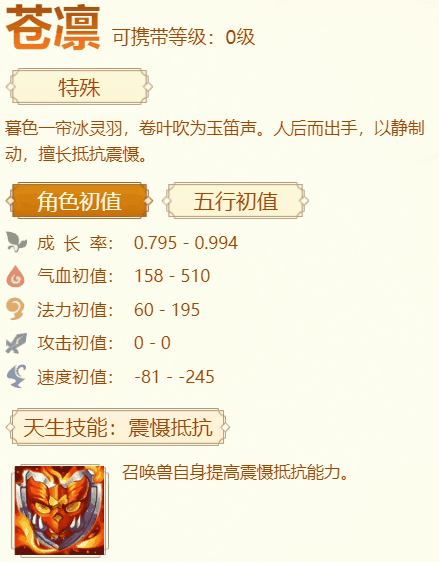 补充说明:苍凛打造优先级为:血量>伤害法术抗性>物理>反震>抗三尸虫;可以利用“坐骑技能、召唤兽配饰以及修炼点数都是增加召唤兽抗性、反震”进行调整,达到理想的面板属性,比如坐骑抄点可以配饰调整来满足优先级。