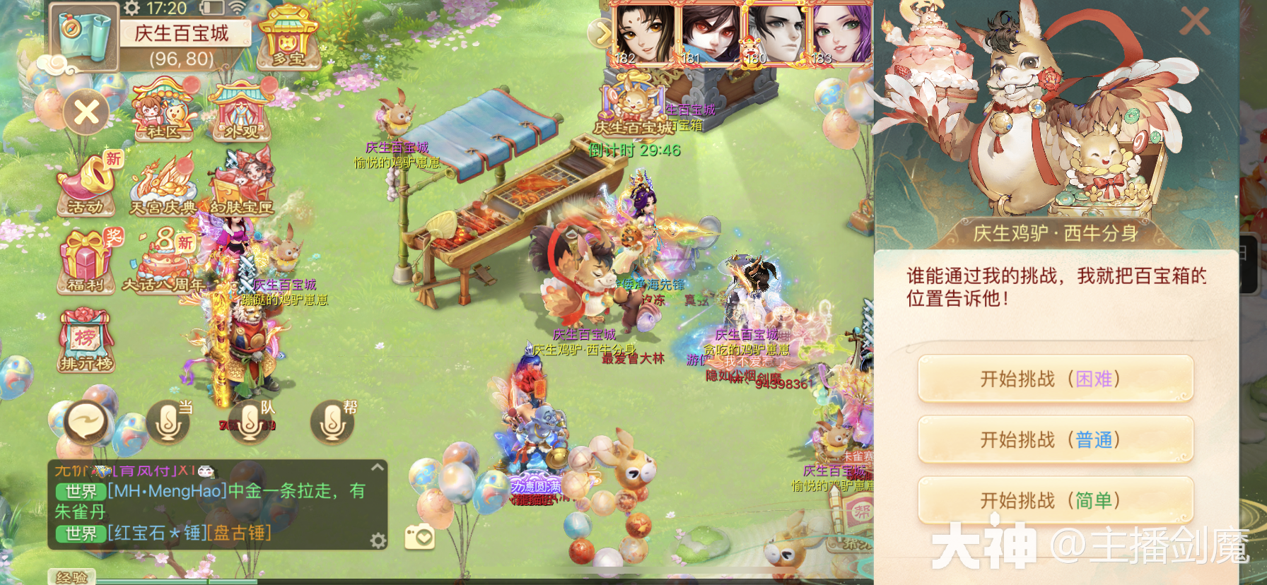 庆生百宝城一共分为2个任务,分别是瓜分鸡驴宝箱和抓住鸡驴崽崽,都是组队挑战任务,一个杀15次,一个杀5次(如下图)