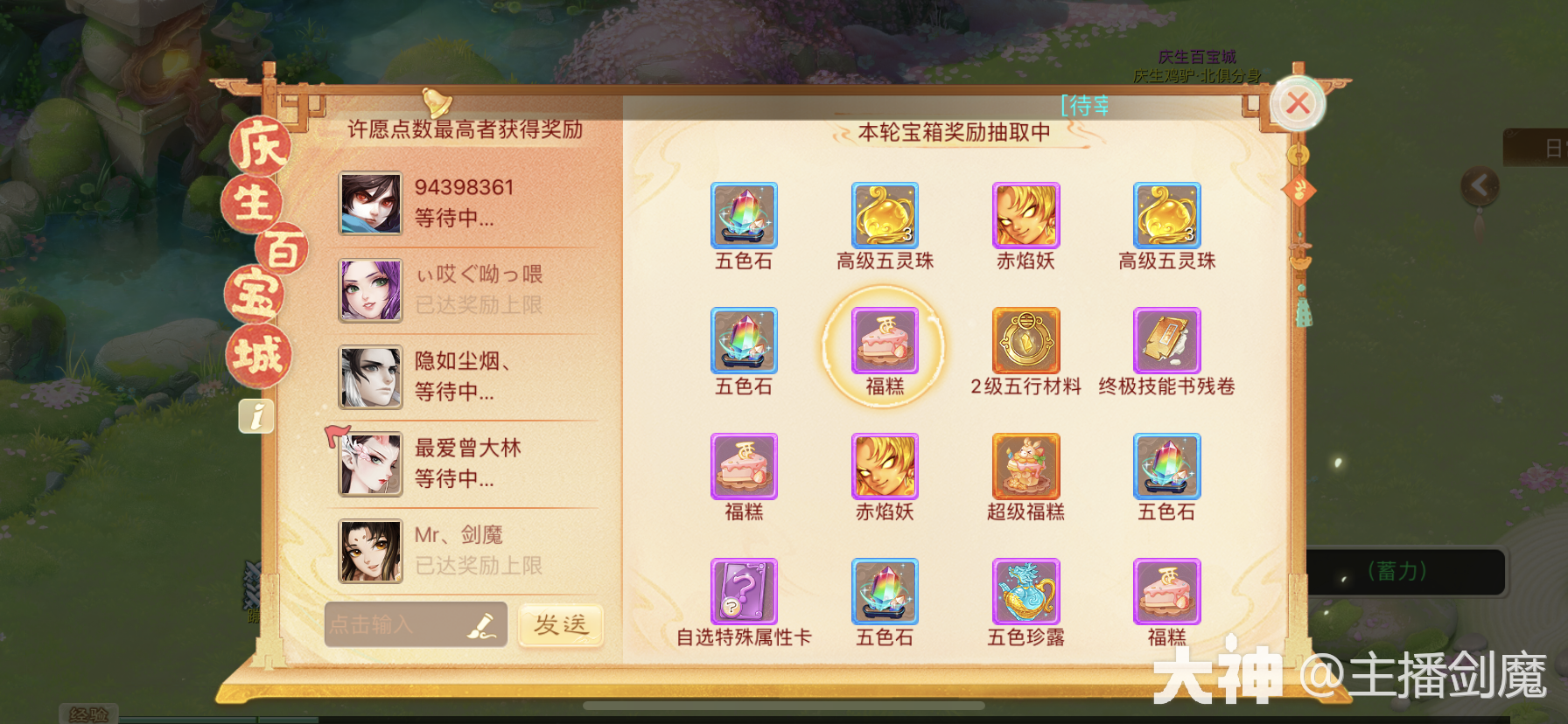 5、队长负责抽取,抽到的物品不是每个人都有,最后花落谁家,要看许愿点数(类似于踏雪寻龙副本抢奖励,如果你没有抢到他会给你安慰奖)