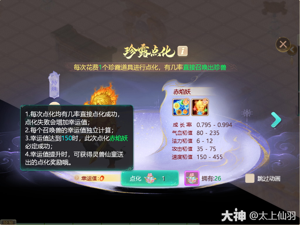 幸运值≥51的玩家,继续点化就别选择直接召唤了。