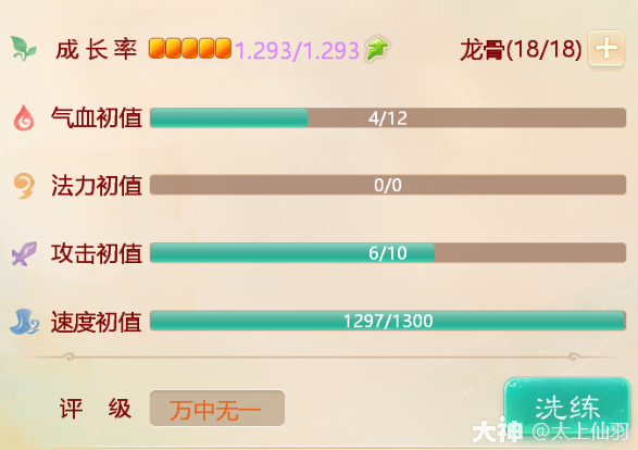 洗练依然是提升召唤兽初始值最核心的方式,尤其是追求满速度年洗到万中无一收益最大。