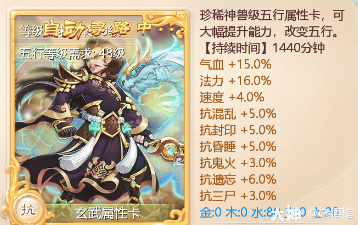 负敏鬼可以选择玄武卡片,可以增加气血与抗控制,五行修炼先水后土,收益较高。