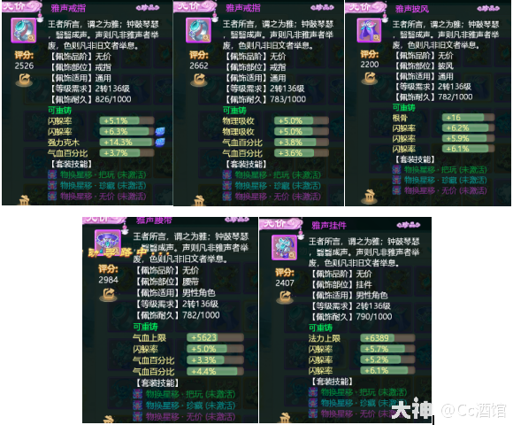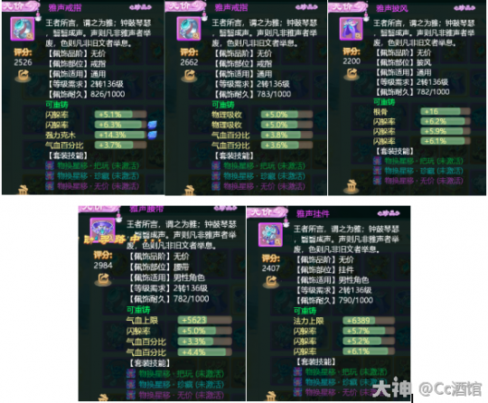 配饰方面可以选择雅声,提升自身的抗控制上限,最低敏位非常的重要,有时候可以决定一场战斗的胜负。