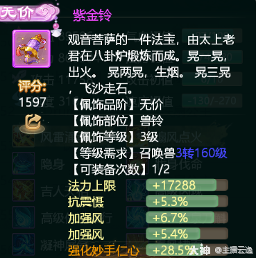 紫金铃建议带双强风法的,铁扇自身的强法只能从这里获取!强法很重要!(对比人物的强法卡效果!)