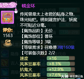 幌金环建议带风法狂暴的,搭配狂澜符即使坐骑没有法术狂暴也能达到可观的法术狂暴率!