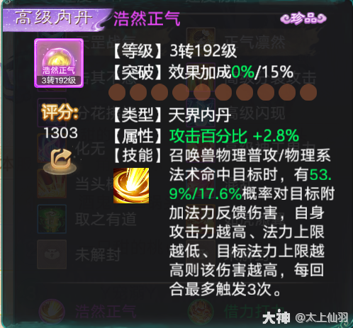 这点非常好理解:法术驱动的物理攻击比普攻强,内丹概率一样就会放大普攻和法术物理攻击的差距。