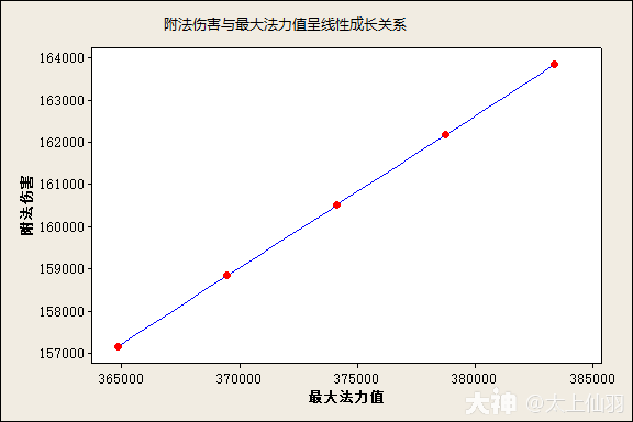 最大法力值增加量与附法伤害增加量呈现类似对数关系,暂时无解。