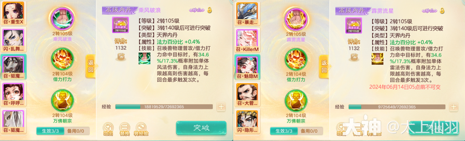 例如:小楼宝宝吃一个与队伍输出不一样的法术内丹,还完后还可以平看实现附混+伤害。