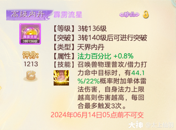注:提升内丹属性就是提升法量,间接提升伤害。