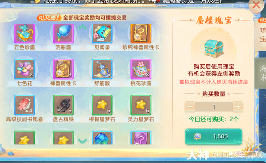 二。建议下调瑰宝消耗珠贝数量,上调获得物品获得几率。非绑定物品强烈建议增多。