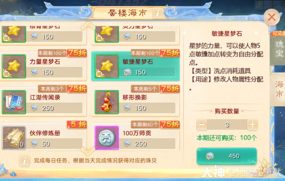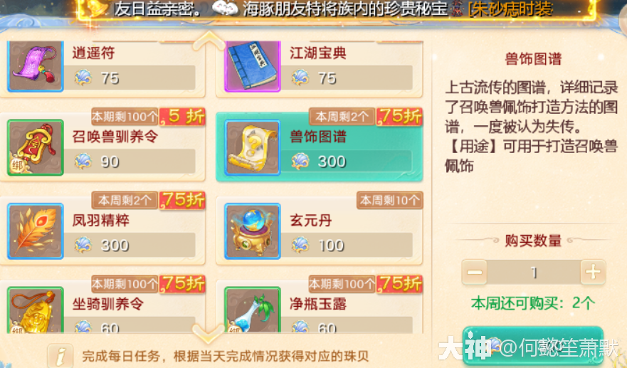 三,建议下调海市中各位物品兑换所需珠贝数量