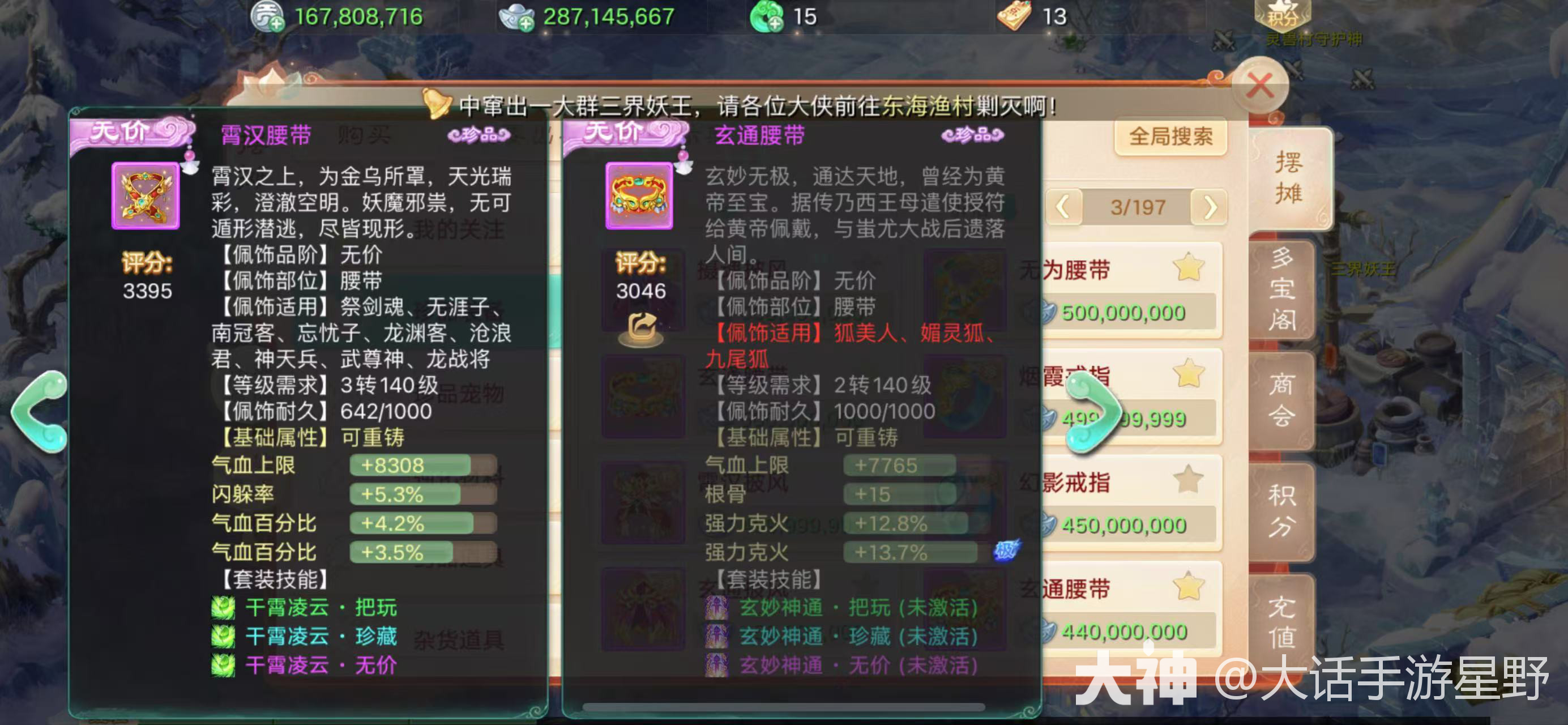无价效果:对敌方目标释放仙法鬼火时,100%击中隐身单位,限时PK的首选仙族配饰,没有之一,但是这个配饰不太适合日常任务,毕竟伤害没有游云和残梦高