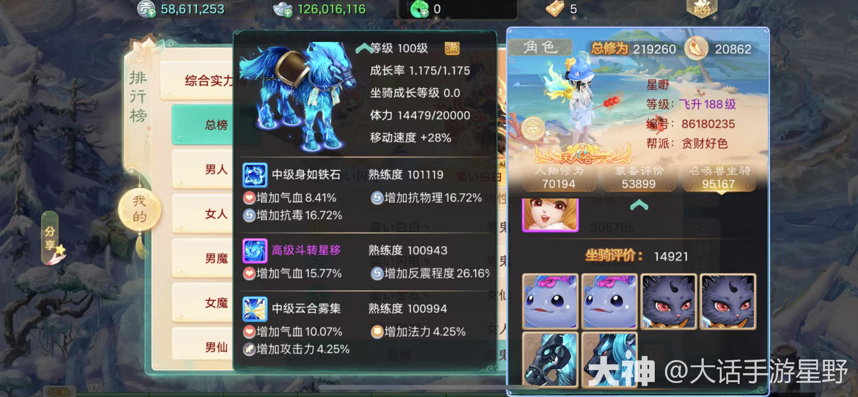 血的上三座,技能以各类高级气血百分比和反震率为主,比如高级斗转星移