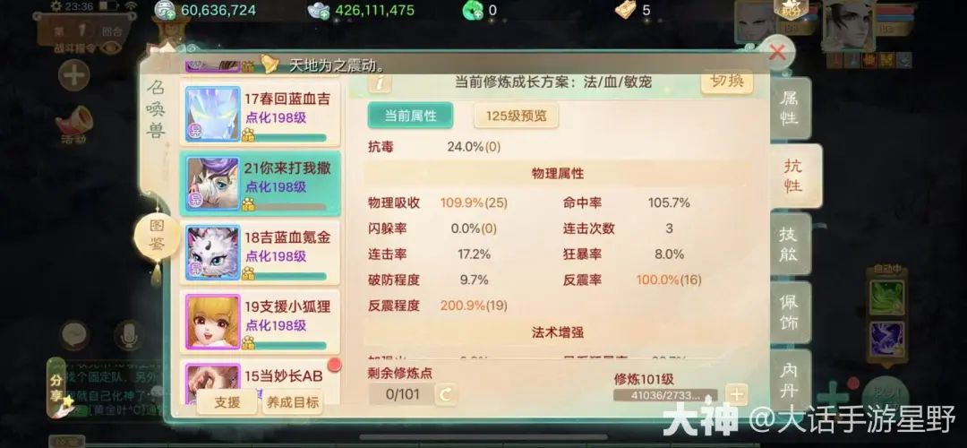 哈喽大家好,我是来自网易大神的星野,这期教大家如何打造一只反震程度200%以上,反震率100%的超级反震猪 1、召唤兽推荐 当康和舍生女娲,这俩召唤兽天生被动技能碧血丹心:提高自身15%反震几率和反震程度,大话手游只有这俩天生技能带反震的,最关键是便宜,平民也能用得起 2、召唤兽技能推荐 高血、福禄双全、进退自如、挚肘、一力拒守、吉人等 3、召唤兽内丹推荐 万佛朝宗、泰然自若、山容海纳,最好都是中级甚至是无价的,万佛朝宗尤其重要,增加召唤兽反震程度和反震概率 4、召唤兽配饰推荐 最好以反震程度和气血百分比为主 5、天策符推荐 御兽篇携带虎威和龙魂萦体,增加召唤兽反震程度和增加召唤兽的成长率,这俩属于必带 6,坐骑技能推荐 搭配三座血坐骑,坐骑技能主要以增加气血和反震程度为主,比如中级和高级的斗转星移。 7、结语 不论是当康还是舍生都是便宜且极易获得,而且打造起来也花费不了太多银两,按我上面的搭配反震程度破200轻轻松松,平民玩家可以人手一只,无论是比斗还是PK都能成为让对手闻风胆的存在。 当然了其他反震召唤兽也可以按照上面的推荐进行打造,但是可能达不到当康或者舍生这么高的反震程度,各位小伙伴如果你也喜欢此类召唤兽,欢迎评论区交流讨论。 更多游戏攻略,请锁定叶子猪《大话西游手游》官方合作专区。 [编辑:叶子猪小秘书]