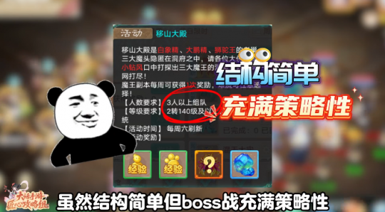大话手游魔王窟副本第三弹,移山大殿有你需要的佩饰吗?移山大殿副本作为2转140级开启的副本,虽然结构简单但BOSS战充满策略性,那么如何轻松拿捏呢? 首先第一阶段没迷宫,只需躲避怪物面前的扇形红圈,沿着十字路口向上移动,等小钻风回头时从背后点击进入战斗,这一场战斗难度不高,正常挂机就能轻松通关。 第二阶段才是重头戏,最终目标是击杀狮驼王,但在路上你可以选择是否先打白象精或者大鹏精,击败白象精能够降低狮驼王抗性,难度比较低,重点集火会回血的大手小怪就可以了。 击败大鹏的话,则会削弱强化属性,对男鬼身板要求较高,进入狮驼王BOSS战之后,开局他会普攻点名全队,所以一定要堆满物理抗性。 血量降低后他还会变身使用鬼火技能,战场上白象精会回血,大鹏精护卫给倒地单位拉药,建议优先控制或击杀他们。 抗性方面推荐主抗混物理鬼火,有余力再补抗三尸,移山大殿掉落雅声、无咎、黯魂、残梦等大量实用佩饰,涵盖各职业需求。 [编辑:ssc]