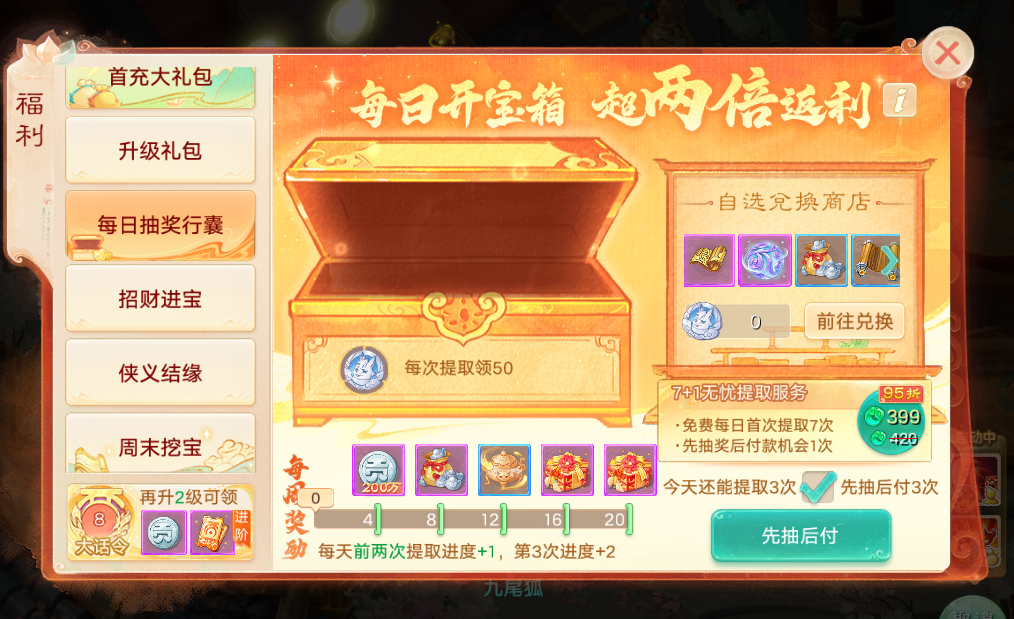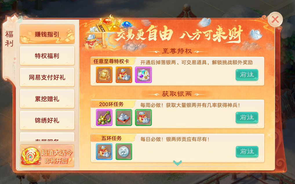 一、游戏内“福利”入口:每日抽奖必薅细节 游戏内“福利”→“每日开宝箱”是白嫖硬通货的核心入口: - 抽奖策略:优先选包含“一级五行材料”的奖励(新服五行材料稀缺,直接影响召唤兽属性); - 付费技巧:花399仙玉解锁“7次无忧提取”,可直接拿7次首抽机会+1次“先抽后付”(抽中好奖再付款,血赚不亏); - 进度奖励:每天前2次抽奖进度+1、第3次+2,进度满20可领神兵/仙器等核心道具。 二、新服小资必充项(1000元档位) 1. 1000元首充套餐 新服首充累计1000元,直接拿一阶仙器+龙马(小资撩妹必备),是2转前战力的核心保障。 2. 大话令(必充) 进阶大话令99.8元:随等级解锁大量修炼材料、高级藏宝图,是前期提升属性的“材料补给站”。 3. 月卡/季卡(必充) - 解决“频繁掉线”问题,稳定刷任务; - 每日领符文礼包(含炼化符、攻击符):刷单人任务时用符文直接拉满效率,尤其炼化符是装备打造的刚需。 三、多宝阁&帮派必备消费 1. 多宝阁→“每周限购”: - 资金充足:全部购买(性价比拉满); - 资金有限:必买一大袋银两、自选宝石礼包、星芒、玄元丹礼包、星运石礼包、帮派书简(提升帮修的核心道具,帮修是后期属性分水岭)。 2.多宝阁→“双周特卖”: - 资金充足:全部购买(性价比拉满); - 资金有限:必买双周限定福袋、满袋银两、帮派书简、帮派成就册、桃花培养礼包 四、网易大神APP:充值返现+额外福利 - 新服首充1000元,返将近80现金,还能抽免单红包; - 月卡/季卡通过大神充值享95折,长期省出1-2个周限购礼包; 五、总结:小资玩家资源分配优先级 1. 必充:1000元首充(仙器+龙马)> 大话令 > 月卡/季卡; 2. 必买:福利宝箱一级五行奖励 > 多宝阁每周限购 > 多宝阁双周限购; 3. 羊毛:网易大神“福利充值”返现+折扣,充值前必走此入口。 [编辑:ssc]