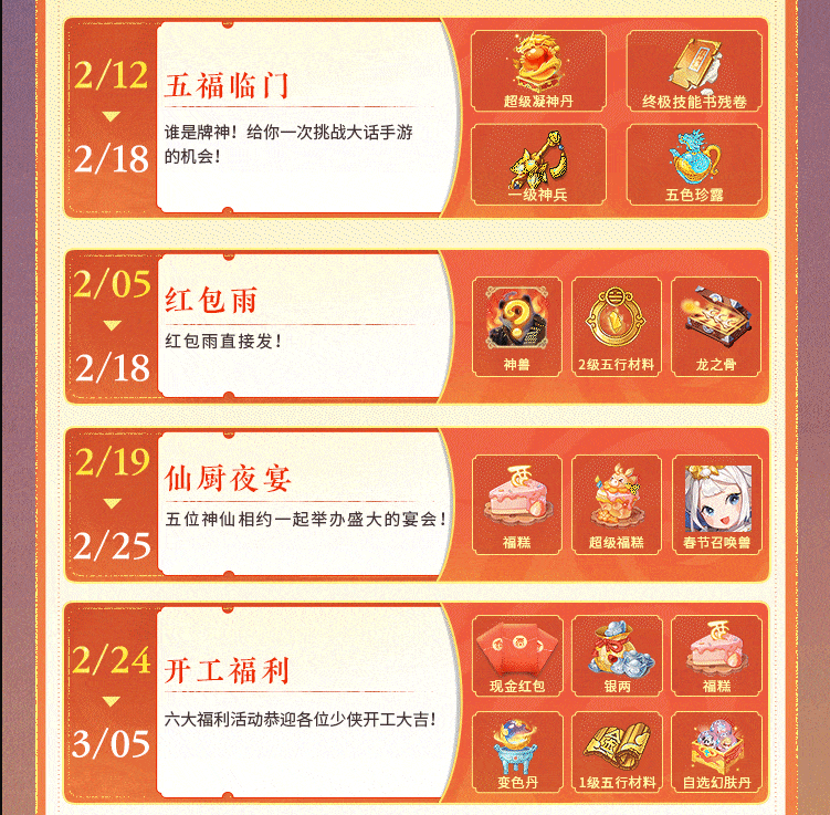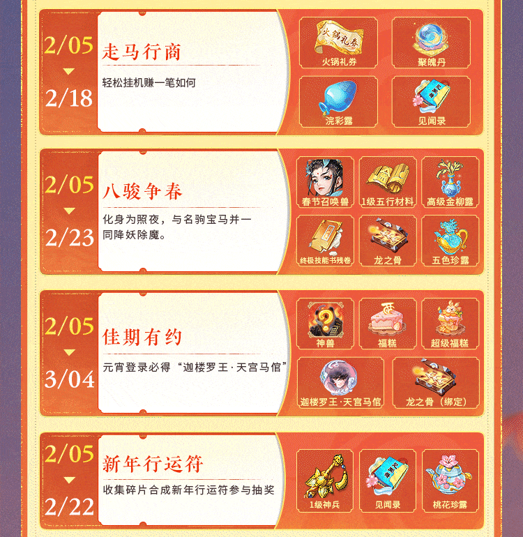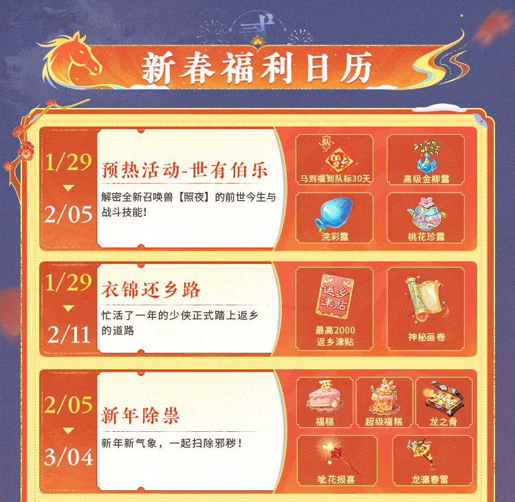 大话西游手游龙马贺新春,福利拿不停! 新春版本今日正式开启,超多福利豪礼等你来拿! 活动日历来袭,助力少侠拿下全部福利! [编辑:ssc]