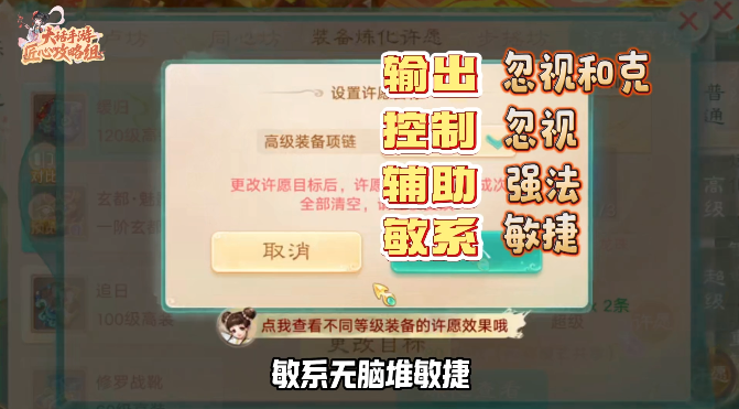 大话西游手游别再盲目炼化,科学洗炼毕业装,三招教你省钱!大话手游角色40级就会开启炼化功能,如果你也有留意摆摊,就会发现大家收购的,基本上都是炼化过的装备。 消耗九彩云龙珠和银两就能进行洗练,交易高装每天5次的师贡洗练机会,每次炼化随机出2-5条属性,装备品质越高,炼化上限就越高。 注意啦,炼化结果要手动替换才能生效,但好消息是:咱们之后再次升级重铸装备,都不会改变炼化属性。所以洗属性时,一定要选对方向。 武器是输出的核心所在,输出和控制职业优先选择忽视,辅助则选择强法,衣服帽子主堆抗性和克,想抢速度的敏单位可以补点敏捷。 一般来说,项链是重要的补充部位,输出则选择忽视和克,控制选忽视,辅助选强法,敏系无脑堆敏捷就可以了。 鞋子是敏系的命根子,无脑选敏捷,男鬼可以考虑根骨或躲闪,对于高级玩家,3级以上神兵或2阶以上仙器的珍品炼化,可以吸附到九彩晶石上进行交易或转移。 非常保值!大家千万不要忘记“炼化许愿”这个保底神器,先锁定职业核心词条再洗,进度满了必出,千万别中途乱换目标浪费材料。 总之前期先用低级材料打基础,后期再用许愿追梦,不要轻易更换目标,实用永远比虚高的评分重要,那么你的装备洗出过极品属性吗?一起来聊聊吧! [编辑:ssc]