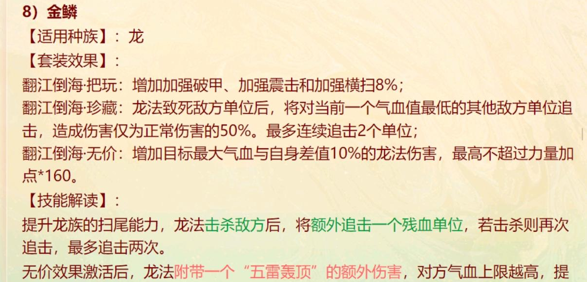 大话西游手游三个正统输出,女人、龙、仙,现在打挑战应该是女人>龙>仙。至于pk,不是我这种两三万的号能碰的,我是菜狗子就不评价了,以下都是针对日常挑战,虽然我也没觉得仙pk有多厉害,196的忽视带霄汉,整天给人刮痧,宝宝也清不动。 说说理由吧: 第一,从炼狱塔九版本,很多仙应该就能意识到不对劲了,对仙的输出和抗性要求很高,我190 235 加深17 完美一合的仙,打塔九单法也就130多万,被抽了就85万了,容错率极低,输出达标了抗性又是难关,我的号192.5抗混,只敢如虎珍珑首发,带朱雀第一回合的混乱很难扛过去,也别说用抗卡了,抗卡能输出打够的仙,加深得25以上的大佬了,号的强度可以直接无视版本了。 第二,本次雅声改版,仙应该才是最大的受害者,本来+10抗性,我的仙能到203的抗混,能追上龙不穿雅声的抗性了,仙都愿意牺牲输出来补足先天抗性的不足了,还不肯放过仙,现在变成197了,197的抗混是什么垃圾水平?是龙100级帮修的水平,19星被混的睁不开眼,100级帮修的龙号你们看得起吗?所以即使穿了雅声,该变抗卡还是变抗卡,别想着翻身了。 第三,新套装,龙和仙的强度不用我多说了吧,仙的是敏队任务用的,跟我们平民中敏没什么关系,龙的强度是实实在在提升一大截的。遗忘鬼更惨,抗更是低的可怜。仙还可以牺牲点输出变抗卡。遗忘鬼要是变抗卡就只能请队友看烟花了。 丝毫不影响我拿二档,再说PK,有五雷和击水的加持,不是别的种族能比的,抗再高也有很高的百分比加成,龙族PK依旧是下水道,其实龙族真正需要增强的是PK,改版了这么多次,PK还是毫无体验感,这游戏就是任务和PK,直接少了一半体验感,很多队伍可以没有龙,但没有一个队伍是没有仙的,其实真正有影响的是那些追求极致的大佬,我们平民反而没影响。 龙现在三破一克的配饰就几亿的价格,我之前的龙,裸破190克280,带朱雀和念还有个玄武,被抽了横扫打塔九168万,抗混乱203,如虎首发基本不被控,这样的龙也就2万不到。 [编辑:ssc]