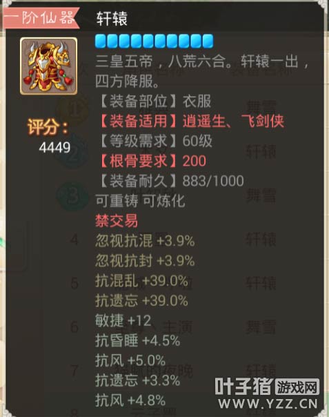 【本心得原创于叶子猪论坛,作者:三围吓死你 ,转载请注明来源】 大话西游手游中,仙器作为装备中的NO1首选的确是实至名归,强大的属性,华丽的外观,可以说是每个玩家都在追求的装备之一!今天给大家带来关于大话手游装备高分排行榜之衣服篇①! 那么仙器的属性和炼化都会影响到装备的评价评分~那么什么样的装备的评分会更高呢? 下面就让花花带大家一起去看看,高评分的那些装备以及那些属性! 其实分数不代表极品 属性适合自己的才是最好的! 更多相关攻略 ▌关于游戏: 大话西游同名手游在玩法上继承了端游的经典玩法。诸如婚姻、家园、庭院、结义、PK、帮战、联赛、皇宫、五环、杀星、挖宝、做天、修罗、地宫、杀塔等大话2玩家所熟知的要素都将在针对智能手机特性优化后加入。而最受大话2玩家喜爱的情义社交体系,如帮派、结义、师徒婚姻系统等也将移植到手游版上。 2015,大话西游同名手游,话回青春,不见不散。 2015,大话西游同名手游,让我们静待这一次的青春到来。 大话西游手游官网:http://xy2.yzz.cn/sy/ 大话西游手游下载:http://www.yzz.cn/ku/dhxy/ 【叶子猪手游通大话手游Q群发码活动】 进入Q群,Q群将会内举办发码活动,越活跃得码机会越大。 群号:213794076 [编辑:AP]