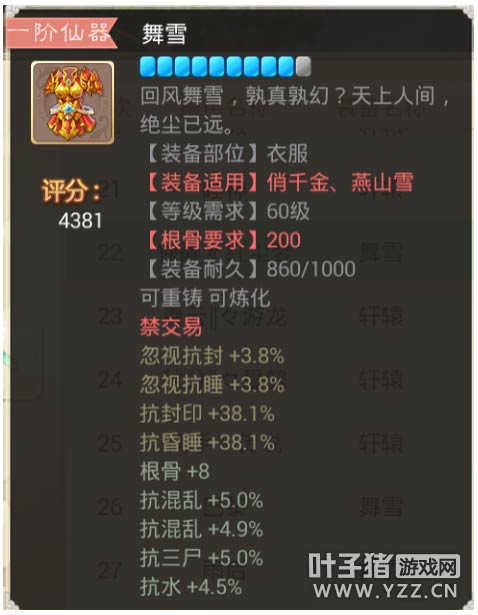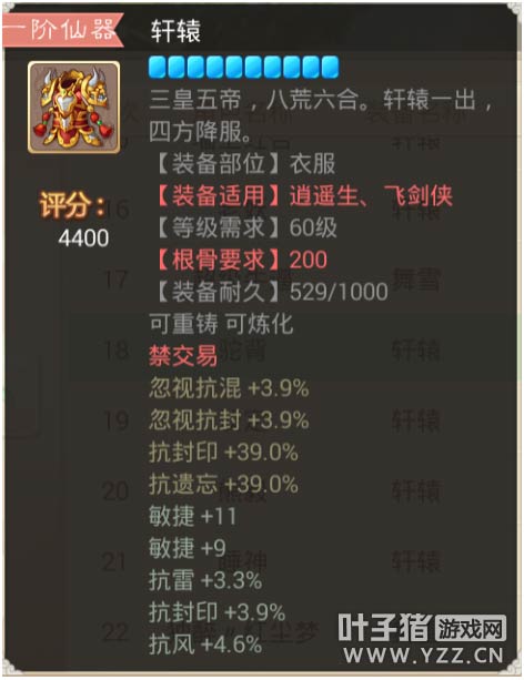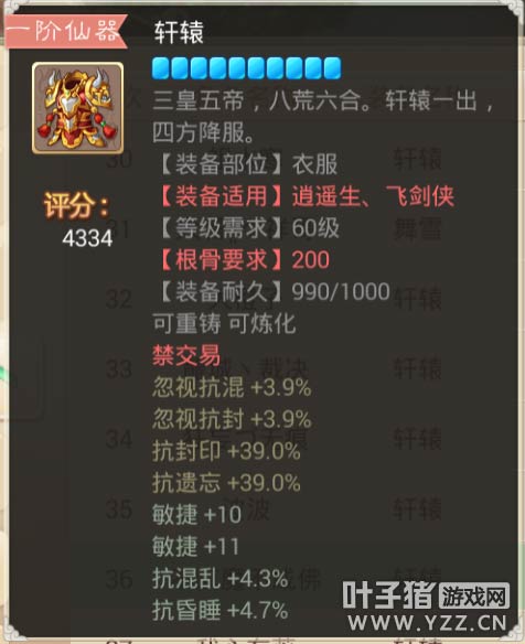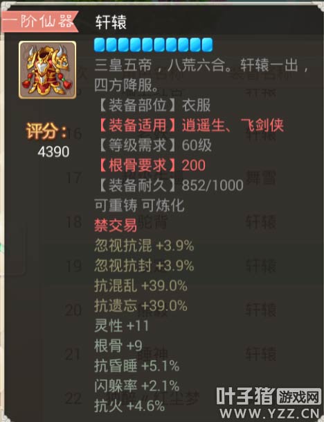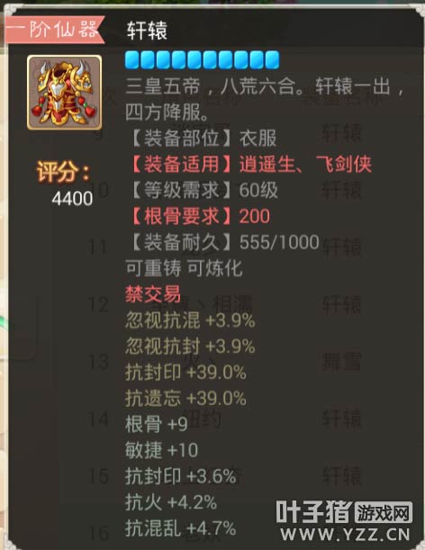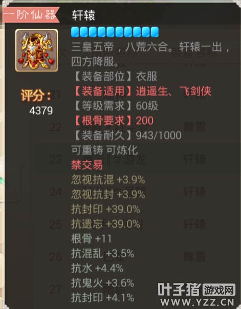 【本心得原创于叶子猪论坛,作者:三围吓死你 ,转载请注明来源】 大话西游手游中,仙器作为装备中的NO1首选的确是实至名归,强大的属性,华丽的外观,可以说是每个玩家都在追求的装备之一!今天给大家带来关于大话手游装备高分排行榜之衣服篇②! 那么仙器的属性和炼化都会影响到装备的评价评分~那么什么样的装备的评分会更高呢? 下面就让花花带大家一起去看看,高评分的那些装备以及那些属性! 其实分数不代表极品 属性适合自己的才是最好的! 更多相关攻略 ▌关于游戏: 大话西游同名手游在玩法上继承了端游的经典玩法。诸如婚姻、家园、庭院、结义、PK、帮战、联赛、皇宫、五环、杀星、挖宝、做天、修罗、地宫、杀塔等大话2玩家所熟知的要素都将在针对智能手机特性优化后加入。而最受大话2玩家喜爱的情义社交体系,如帮派、结义、师徒婚姻系统等也将移植到手游版上。 2015,大话西游同名手游,话回青春,不见不散。 2015,大话西游同名手游,让我们静待这一次的青春到来。 大话西游手游官网:http://xy2.yzz.cn/sy/ 大话西游手游下载:http://www.yzz.cn/ku/dhxy/ 手机扫描,即可下载大话西游手游客户端
