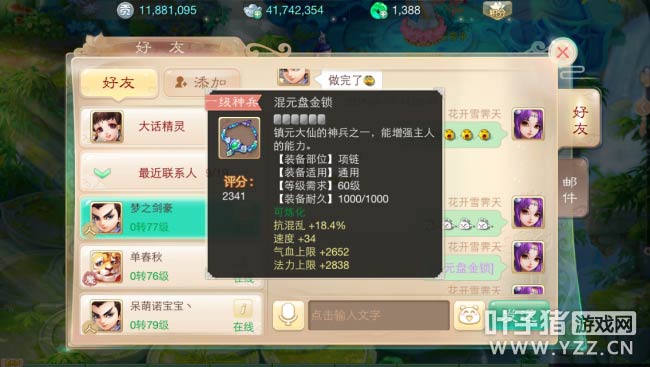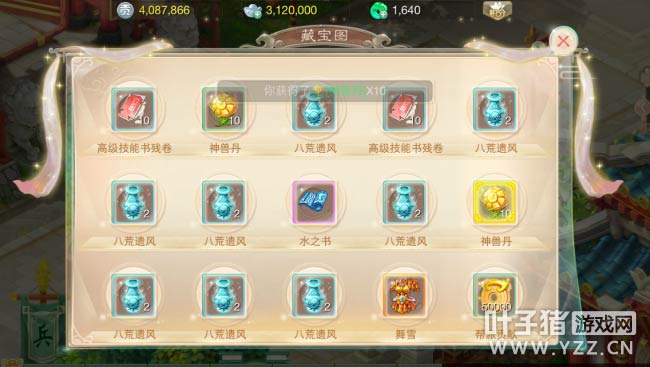 【本心得原创于叶子猪论坛,作者:花开雪霁天,转载请注明来源】 今天花开又看到了许多挖宝达人挖到了好东西,也下定决心,亲自下水试试有多深。于是怀着紧张的心情去换了宝图,怀着紧张的小心脏就去探索大唐的宝藏了。当我颤巍巍的小手打开宝藏时,还算不是特别失望。于是越挖越起劲儿,一练挖了十张,终于得到了一个混元盘金锁。 十次宝图出宝情况:6次八荒(每次两个)、一次高级技能书残卷(10个)、一次高级技能书残卷(20)个、一次神兽丹(10个)、一次神兵。总体来说出宝率还算不错的。喜欢玩的可以入水玩玩,不算深。 ▌关于游戏: 大话西游同名手游在玩法上继承了端游的经典玩法。诸如婚姻、家园、庭院、结义、PK、帮战、联赛、皇宫、五环、杀星、挖宝、做天、修罗、地宫、杀塔等大话2玩家所熟知的要素都将在针对智能手机特性优化后加入。而最受大话2玩家喜爱的情义社交体系,如帮派、结义、师徒婚姻系统等也将移植到手游版上。 2015,大话西游同名手游,话回青春,不见不散。 2015,大话西游同名手游,让我们静待这一次的青春到来。 大话西游手游官网:http://xy2.yzz.cn/sy/ 大话西游手游下载:http://www.yzz.cn/ku/dhxy/ 游戏下载地址: