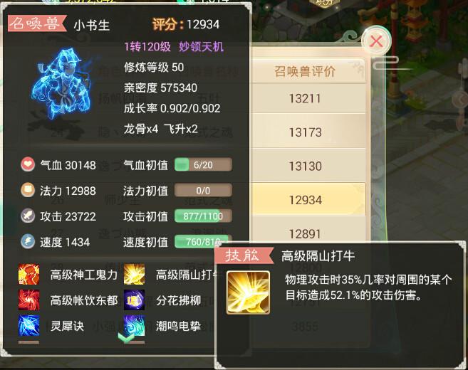 《大话西游》手游高亲密下召唤兽技能的效果一览