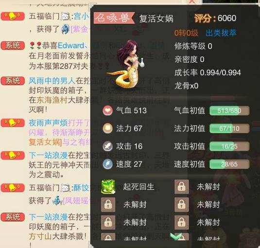速来围观!大话西游手游全服首只复活女娲新鲜出炉