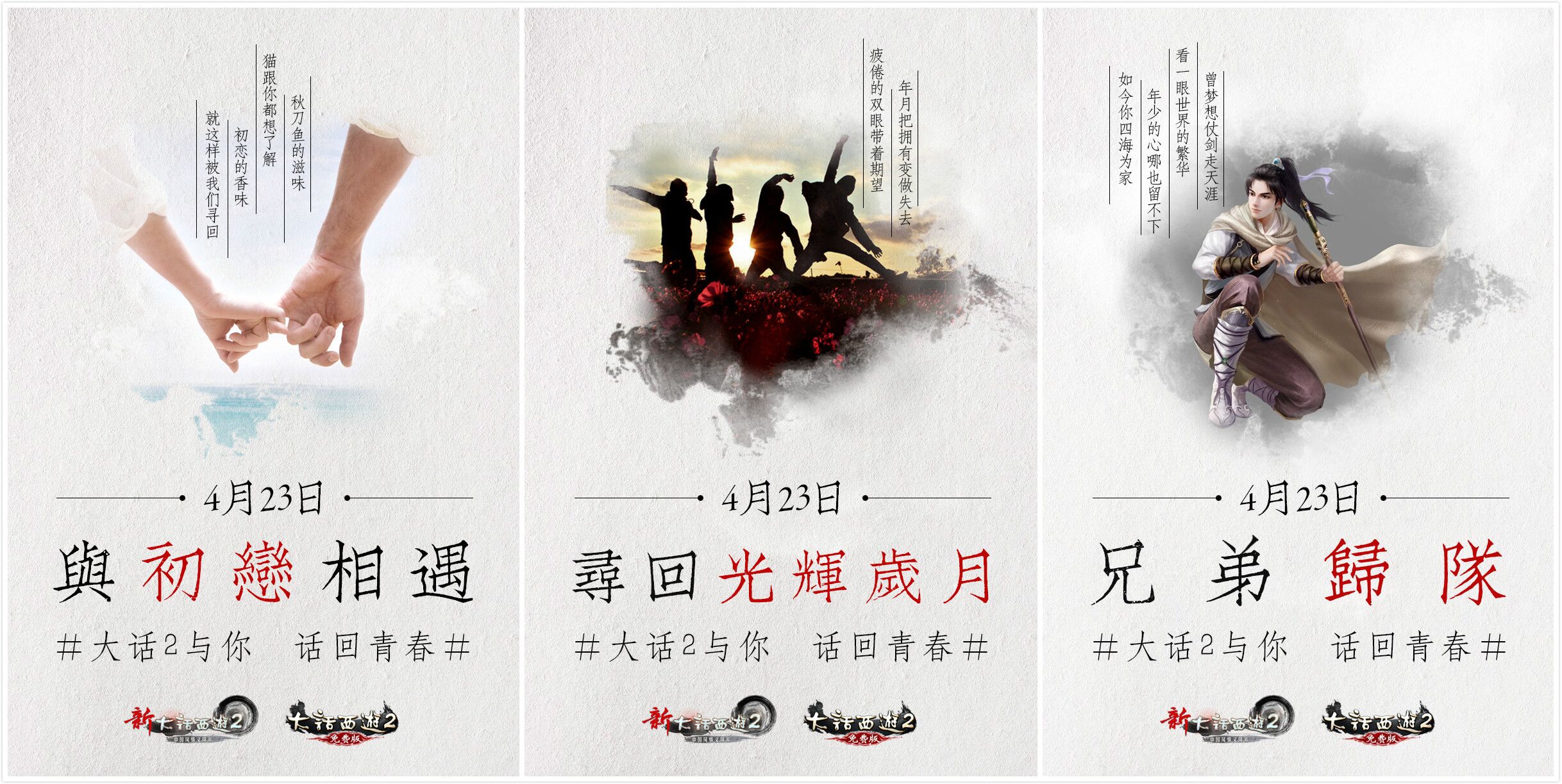 网易游戏旗舰网游大话2在前不久召开的资讯发布会上公布了大话西游同名手游的相关信息。这款被网易视为2015战略重要组成部分的手游,一经公布便迅速引来了业内诸多媒体的争相围观。为了给游戏提前造势,网易手游也打出了一套以“回忆青春”为主线的组合拳。 悬念海报忆青春 回忆满载引共鸣 早在发布会召开前三天,一组以#大话2与你 话回青春#作为主线的悬念海报便在网上热传。海报别出心裁的将80、90后耳熟能详的歌曲融入其中。无论是“秋刀鱼的滋味,猫跟你都想了解”还是“年月把拥有变做失去”,都是传唱了两代乃至三代人的经典歌词,这些朗朗上口的歌词不但使海报变得更为生动,也在引发玩家共鸣方面起到了积极的推动作用。而这组悬念海报在设计上也一改此前游戏海报大篇幅突出产品特色的理念,仅用紧紧相牵的双手、一起前行的背影等场景感极强的画面作为海报主体,寥寥数笔便戳中青涩的初恋、一起玩一起疯的兄弟、年少时仗剑走天涯的梦想等玩家心中最柔软的角落。 无论是将经典曲目的歌词作为文案,还是走心的图案元素,三张悬念海报的推出无疑都为此次大话西游同名手游的造势打响了成功的第一枪。这一点从海报上线后大话玩家们的争相转发便能看出。 走心长微博催泪 玩家自制素材致敬青春 在连续推出三张悬念海报之后,大话西游同名手游又发起了#青春对你而言是什么#的话题活动,与玩家共话青春。这个充满了浓浓回忆色彩的活动迅速在大话玩家群体中引起了极大的反响,玩家纷纷自制图文素材参与到这项活动中,回忆自己的青春岁月。 事实上,#对你而言青春是什么#这类能够直击80、90后玩家内心的话题在网络上的影响力是什么巨大的。话题的阅读量接近1300万,讨论量也达到了2.1万。随后更是在短短24小时内冲到了热门话题榜第六位。 对青春抱有美好回忆的显然并不只有普通玩家。在微博上影响力甚广的红人们对于自己逝去的青春也有话要说。以微博知名大号“颜文字君”为代表的一众微博大V、草根红人也纷纷晒出了自己对于青春的记忆。 而大话西游同名手游的官方微博在发布会当天发表了一篇名为《再遇云中殿:十年大话难相忘》的长微博。在这篇长微博中,大话西游同名手游将悬念海报所定下的“青春与回忆”这一颇具暖心色彩的基调进行到底,继续大打情怀牌。长微博中无处不在的“致青春”式的语句让无数玩家纷纷回忆起了自己青涩又美好的青春。文中以一个80后玩家的身份对灌篮高手、周杰伦这些影响了80、90后青春的人以及作品进行了回忆,并用“长安城依旧车水马龙,繁华模样一如十三年前初逢时”等唯独大话玩家能明白的词句来打动玩家 大话十三年 同名手游再续青春回忆 大话2自2002年上线以来,在长达13年的运营中以其庞大精细的系统设定,婚姻、家园、庭院、PK、杀星、挖宝、昨天等种类繁多的玩法以及以情义社交系统为代表的交互系统在玩家群体中树立了极高的声望。 此次投入空前资金与人力研发的大话西游同名手游,必将成为网易手游产品线的重要组成部分,并将以回忆青春之名与玩家再续西游情缘。 游戏官微:@大话西游手游 [编辑:Dickson]