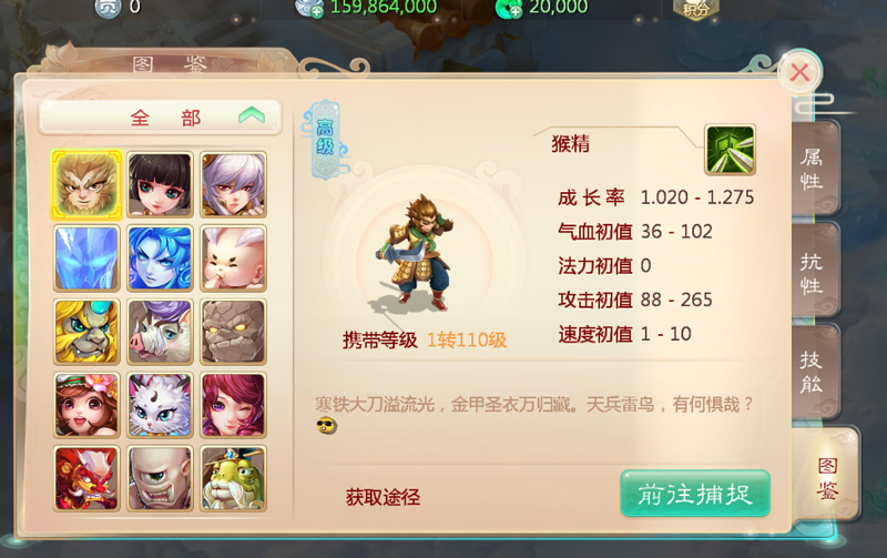 大话西游手游新召唤兽猴精 携天生技能初攻高达265