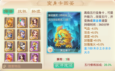 变身卡给玩家提供了一条提升实力的捷径,同时也赋予玩家五行属性。