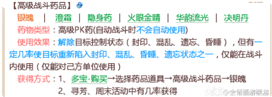 2)被睡忘法术命中,被忘可以叫宝宝 保护,被睡可以被打醒,还是有一定操作空间,如果用银魄产生副作用反而被冰混,则得不偿失,所以建议使用澄霜。