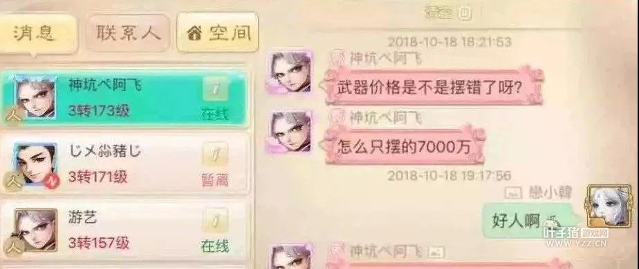 长辈们经常告诉我们,好人一生平安,遇见能帮的人就帮一把,肯定有好运,以前我不信,可是玩了大话西游手游,我信了! 事情的经过是这样的,这个玩家摆摊摆了一件武器,但是似乎是价格摆错了,但他自己并不知道,于是有个玩家提醒了他! [编辑:米奈]