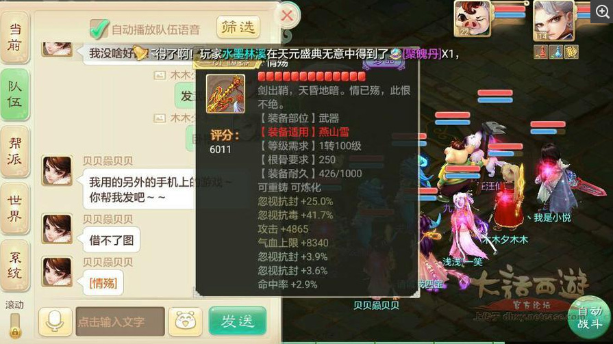 近期,大话西游手游情义今生PK赛甲级赛已经火爆进行中了,那么就究竟是才是甲级第一名呢?本期小编偷偷的给大家爆料关于NO.1木夕队伍的土豪物资,绝对亮瞎你的24K合金眼睛。 ▌关于游戏: 大话西游同名手游在玩法上继承了端游的经典玩法。诸如婚姻、家园、庭院、结义、PK、帮战、联赛、皇宫、五环、杀星、挖宝、做天、修罗、地宫、杀塔等大话2玩家所熟知的要素都将在针对智能手机特性优化后加入。而最受大话2玩家喜爱的情义社交体系,如帮派、结义、师徒婚姻系统等也将移植到手游版上。 2015,大话西游同名手游,话回青春,不见不散。 2015,大话西游同名手游,让我们静待这一次的青春到来。 大话西游手游官网:http://xy2.yzz.cn/sy/ 大话西游手游下载:http://www.yzz.cn/ku/dhxy/ 【叶子猪手游通大话手游QQ交流群】 叶子猪为广大玩家提供最活跃的QQ交流社区,在这里你可以畅所欲言,交流心得体会等,Q群更是会不定期内举办活动,越活跃得奖励的机会越大哦。 群号:213794076 [编辑:Dickson]