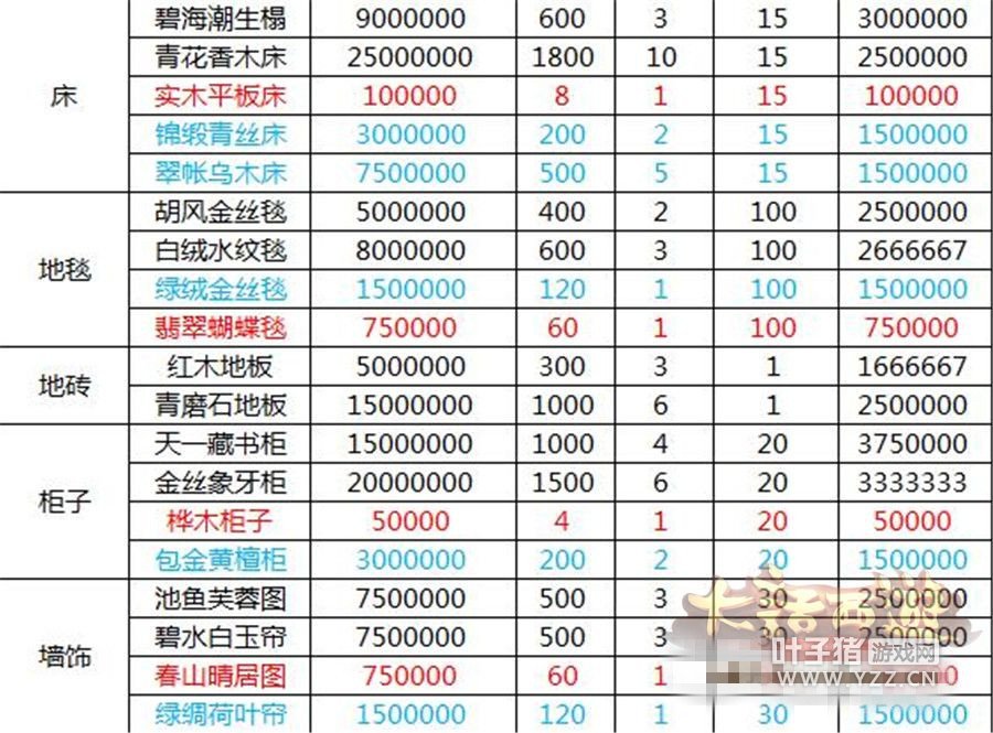 大话西游手游实用攻略 房屋装修靠哪家之家具的价目表